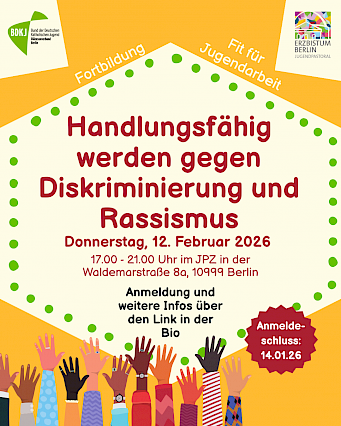 Wie kann ich diskriminierende und rassistische Aussagen und Einstellungen in meiner Arbeit mit Jugendlichen erkennen und ihnen argumentativ begegnen? Wie kann ich Betroffene schützen und auf welche Weise bespreche ich die Thematik mit Jugendgruppen? Freue dich auf hilfreiche Tipps, Hintergrundwissen und Handwerkszeug für deine Praxis!